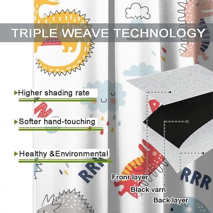Cartoon Dinosaur Curtains for Kids Boys Girls Home Decor Colorful Cute Dino Animals Print Pattern Rod Pocket Blackout Window Drapes for Nursery Baby Bedroom Playroom W21xL45in 2 Panels