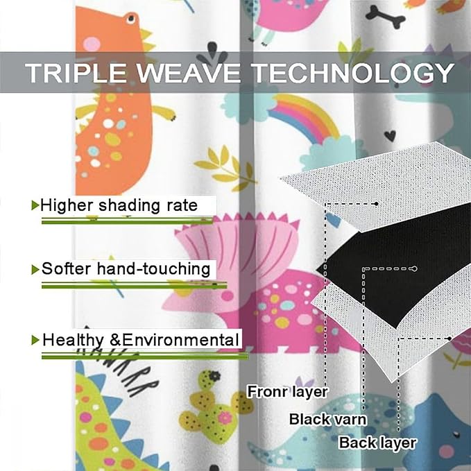 Cartoon Dinosaur Curtains for Kids Boys Girls Home Decor Childish Cute Dino Animals Print Pattern Rod Pocket Blackout Window Drapes for Nursery Baby Bedroom Playroom W36xL63in 2 Panels