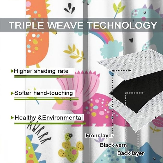 Cartoon Dinosaur Curtains for Kids Boys Girls Home Decor Childish Cute Dino Animals Print Pattern Rod Pocket Blackout Window Drapes for Nursery Baby Bedroom Playroom W26xL84in 2 Panels