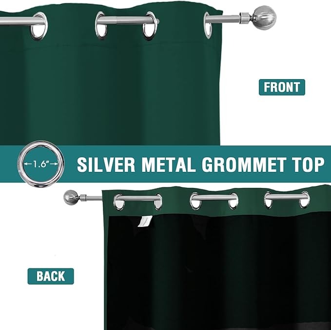 ChrisDowa 100% Blackout Curtains for Bedroom with Black Liner, 2 Thick Layers Total Blackout Thermal Insulated Grommet Window Curtains 2 Panels Set (Forest Green, 52 x 84 Inch)