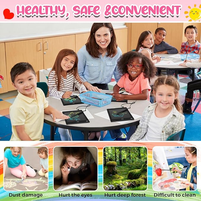- Eye Protection Screen: 8.5 inch children's LCD writing board with rounded corner design, feature with LCD screen, no radiation, no glare, nice vision experience suitable for children's long term safe and comfortable use
