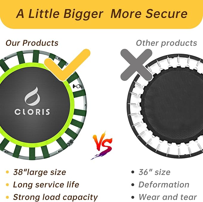 - 【EASY TO PUT TOGETHER】This elastic band trampoline requires little setup as it comes with the bands installed and adequately looped around the frame when you purchase them. To make the easy assembly easier, we also make a demo video to provide exact and step by step instructions, making sure that you get to enjoy our product sooner rather than later