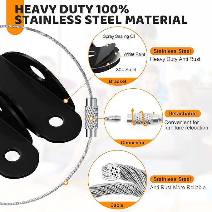 - PREMIUM STAILESS STEEL STRAPS - These furniture straps are made of high-quality stainless steel material, a high resistance to corrosion means that it will never rust during whole life use. And it has a resistance to fire and heat. What’s more, the straps are more sturdy and durable than other plastic straps, which will provide a perfect effect on baby safety.