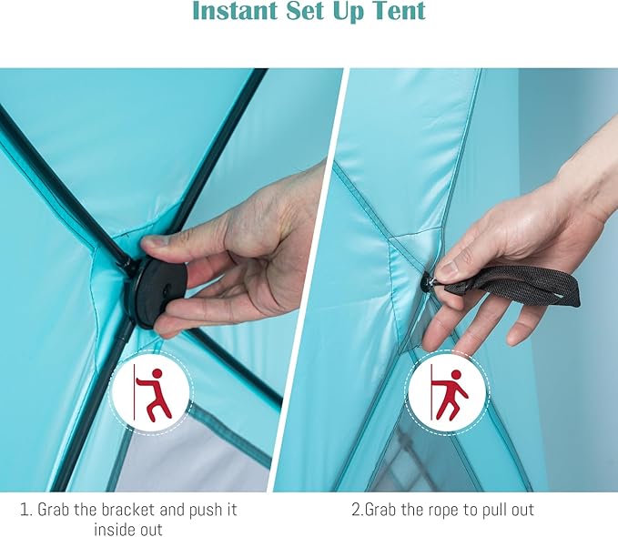 - Enough Height and Spacious Space: The beach tent with its 62" elevated height, offering good vision. With dimensions of 81"L x 54.99"W x 62"H, enough accommodating up to 4-5 people on the beach.