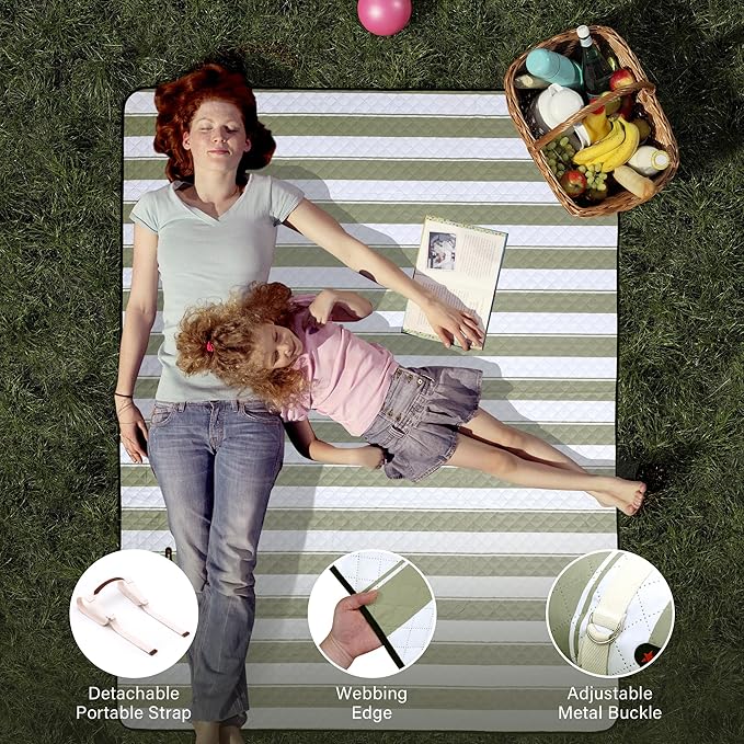 - 【Waterproof & Machine Washable】Outdoor picnic blanket is super easy to clean due to its durable and waterproof backing, easily shake & wipe off dirt, mud, wet grass, and beach sand. And you could put it into washing machine to save your time and free both hands.