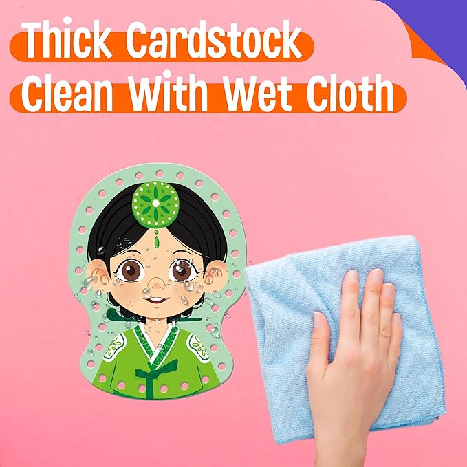 - Cute Patterns & Smart Designs: The pattern covers cure children from different countries, like China, Korea, America, etc. The illustrations on cards are big, vivid and vibrant. The holes are clearly cut and easy for preschoolers to work with. The strings are easy for children to use and fit into the holes easily.