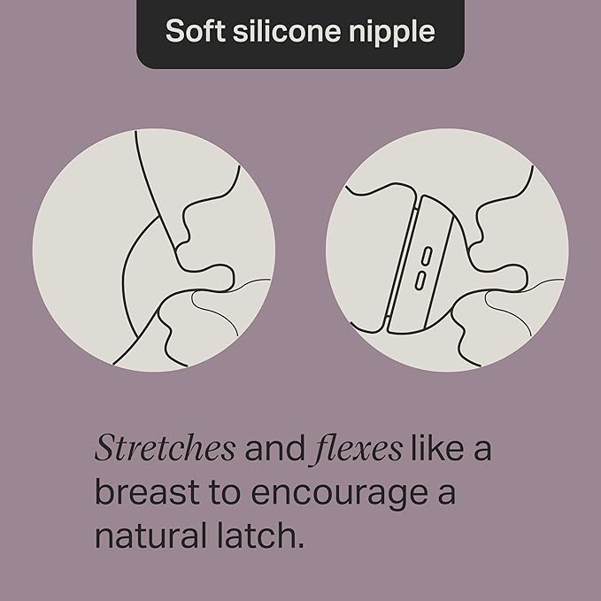 - Pace feeding: The soft silicone nipple flexes and stretches like a breast and allows your baby to feed comfortably at their own pace.