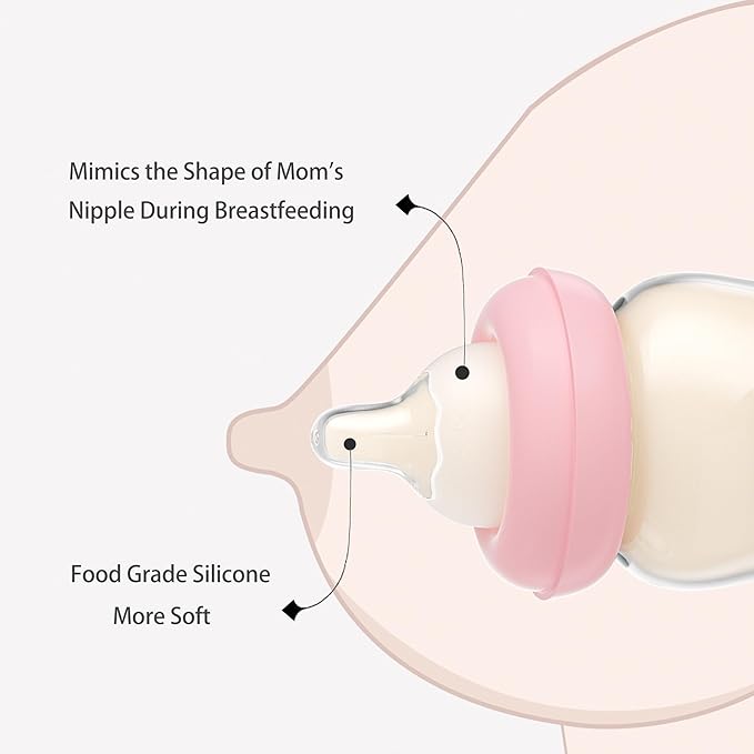 - Glass natural baby bottles with natural response nipples can control the speed of milk according to the baby suction, just like the natural sensation of breastfeeding.