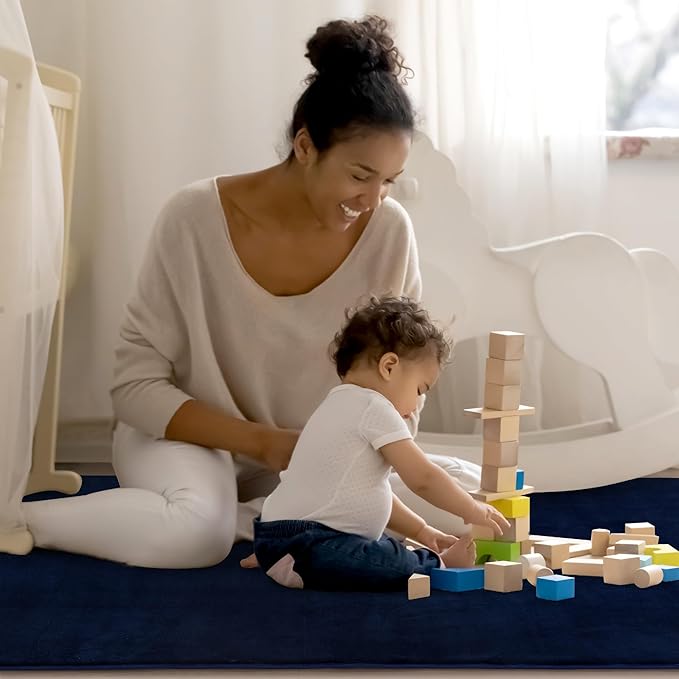 BALAPET Thick Memory Foam 50x50 Play Mat for Playpen, Super Soft Velvet Portable Baby Playpen Mat for Kids Toddler Crawling and Play, Non-Slip Bottom Playmat, Navy Blue