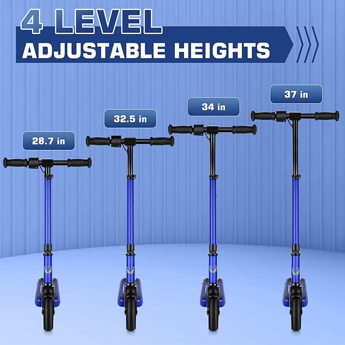 - 【🚀Accompany Kids to Grow Up】The Caroma electric scooter for kids is designed with 4 adjustable heights handlebar, the height can be adjusted to 28/31/34/37 inches, suitable for children from 6-12 (even 14 ages), and is best for boys and girls up to 132 lbs. Caroma is your child’s best partner as they grow up, making it the perfect scooter for kids ages 6-12.