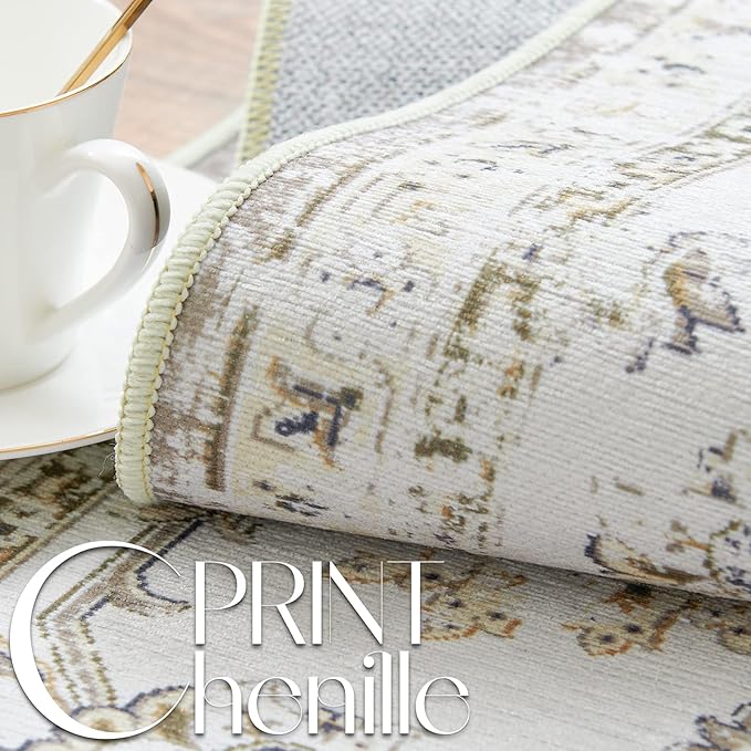 jinchan Long Hallway Runner Rug 2x12 Machine Washable Runner Rug Taupe Vintage Floral Design Non-Slip Ultra-Thin for Kitchen Laundry Room Bedroom Farmhouse (2‘x12',Taupe)