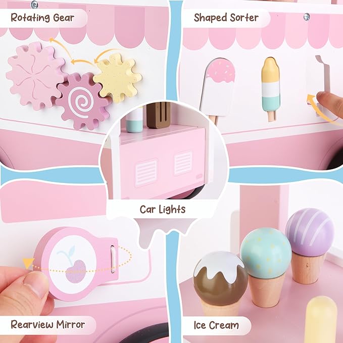 - 【ICE CREAM THEME】Baby Walker comes in a pink hue, adorned with multiple adorable ice cream designs, three rotating gears, a tiny mirror, and a comfortable handle. This engaging toy is sure to grab your baby's attention and make them even more eager to take their first steps