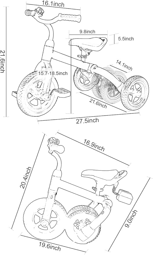 - 😊Recommended Age: Ideal for 2 to 5-year-olds, this adaptable bike transitions from a tricycle (24-32 months) with pedal or pedalless options to a balance bike (2-4 years). The adjustable seat (15.7 to 18.5 inches) caters to your child's growth, ensuring a comfortable fit. With a robust 55 lbs load capacity, it offers a durable and safe ride.