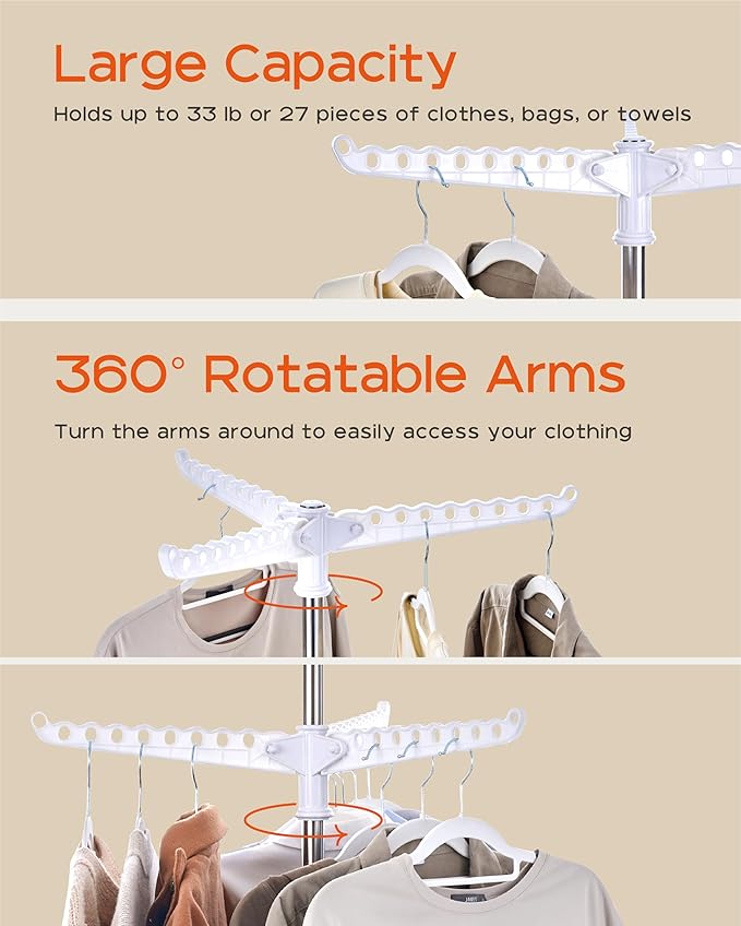 - [360 Rotating Clothes Rack] Equipped with a 360-degree swivel design, this laundry drying rack provides you with the convenience of hanging and accessing your clothes.