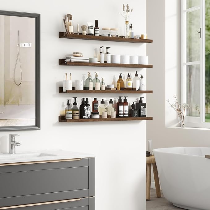 - 【Versatile Shelves Sets】If you find yourself with a plethora of pictures but are unsure how to showcase them, our picture ledge shelves—especially in large sizes—are the perfect solution! Our hanging shelves provide a secure and stylish way to store and display various types and sizes of photo frames in one convenient location, ensuring they stay safely in place without any fears of falling.