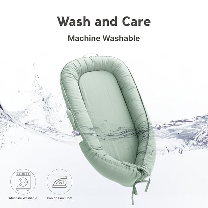 - [Versatile and Adaptable Design] The bionic design of this baby lounger gives your child more adaptability while also giving them a sense of security and holding. The machinewashable, double-sided cover is breathable and has adjustable ends that extend to fit your baby's growth for years of use.