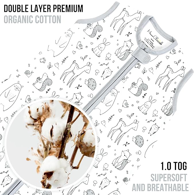 - 【DOUBLE LAYER 1.0 TOG 100% Organic Cotton】— This Baby Sleeping Bag is made of double layer premium organic cotton with a TOG rating of 1.0, which is most suitable for moderate seasons or climates, can help your baby get a peaceful, long sleep year-round - being not too hot or cold. The organic cotton interlock minimizes the risk of overheating and keeps your baby warm and comfortable.