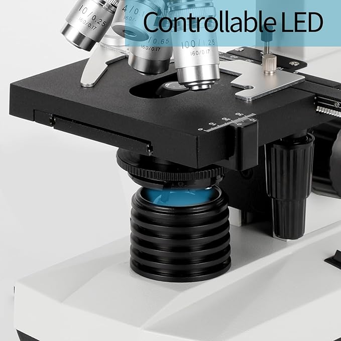 Binocular Compound Microscope, 40X-5000X Magnification, Wide-Angle Eyepiece WF10X WF25X, LED Light Source, XY axis Double-Layer Stage, Adult Microscope (Supports WiFi Wireless Connection)