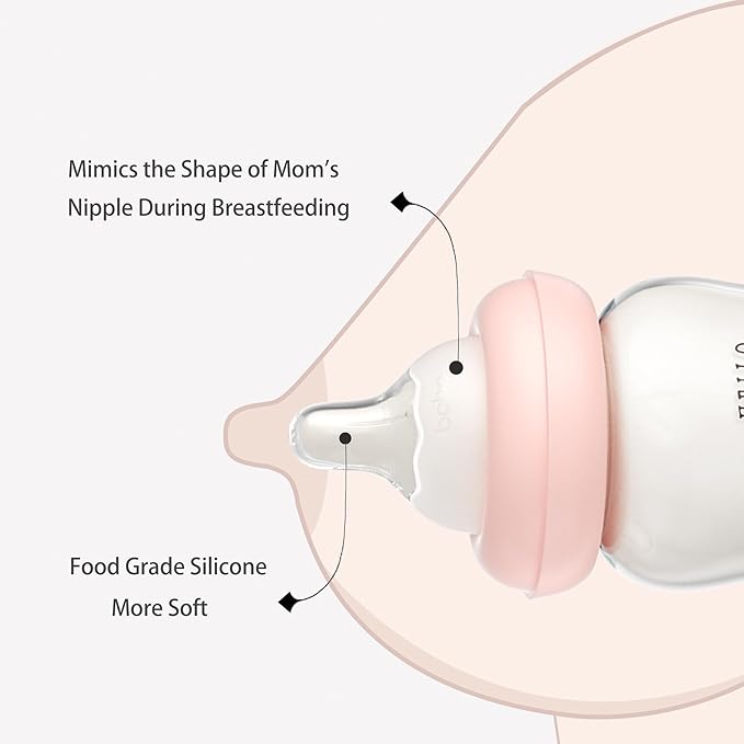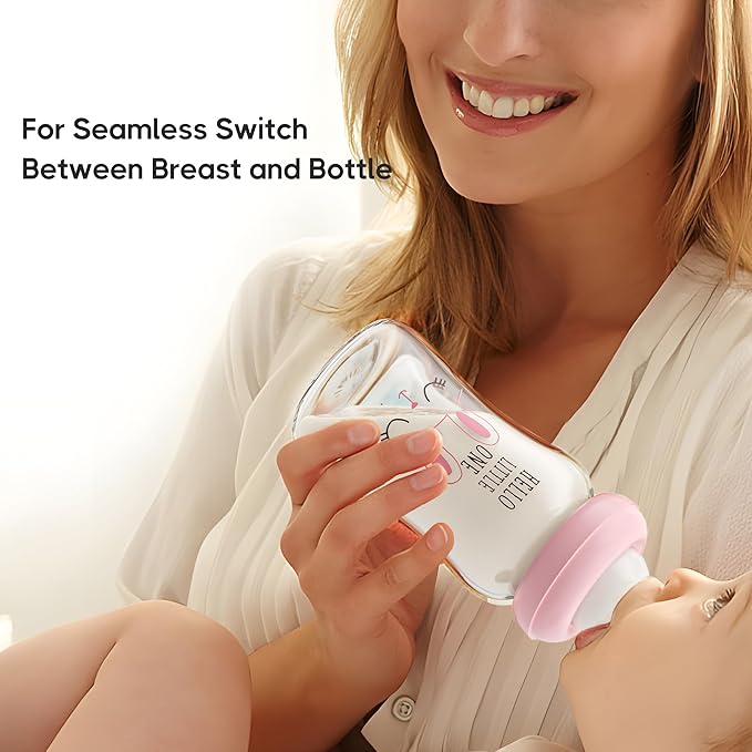 - Glass natural baby bottles with natural response nipples can control the speed of milk according to the baby suction, just like the natural sensation of breastfeeding.