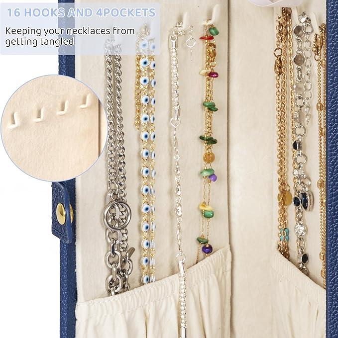 AKOZLIN Jewelry Box Organizer Functional Leather Jewelry Storage Case for Women Girls Ring Necklace Earring Bracelet Holder Organizer with Mirror Blue