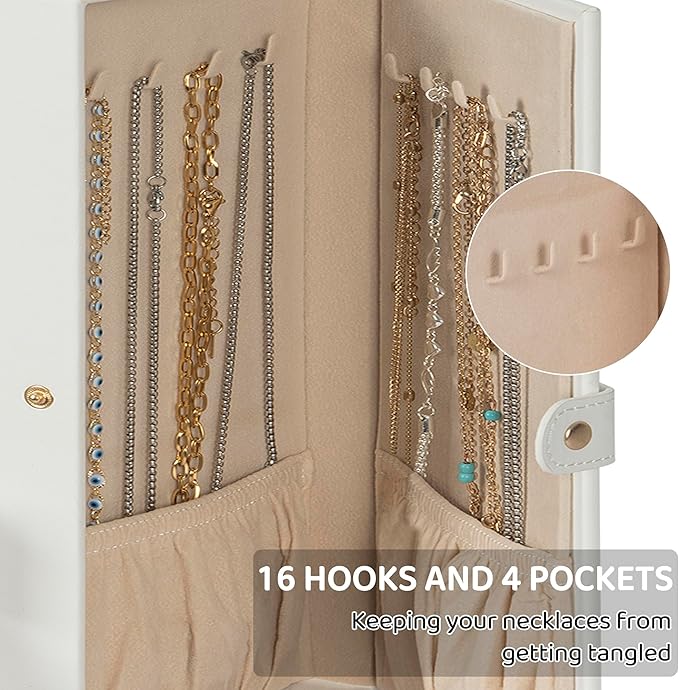 - 【Elegant & Durable】Attractive appearance with leather surface and soft velvet lining. Sturdy construction and quality material make it very durable. The jewelry holder can tidy your table and protect your precious jewelry for a very long time .It measures 10.5"L x 6"W x 13"H when closed