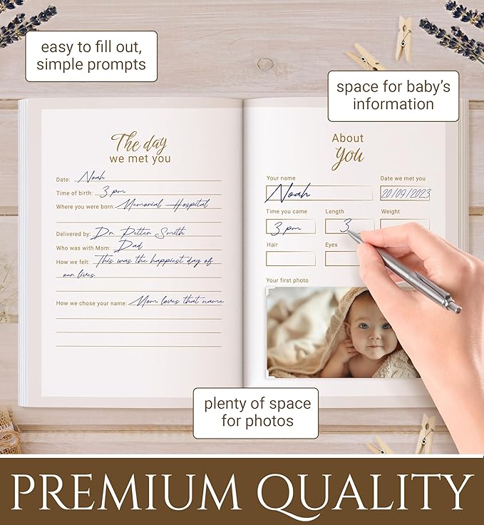 - This elegant design is not just a book; it is a cherished heirloom that tells the story of love, joy, and bond between parents and your baby. As the years pass, this precious book will become a cherished memento, evoking smiles and reminiscing about those magical moments of your baby's first year.