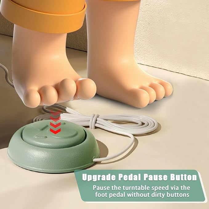 - Upgrade Pedal Pause, Easy To Operate: Upgrade the pedal pause button to make the clay shape simpler. Through the pedal pause button, the turntable speed is paused without dirty panel pause button. Equipped with clockwise and counterclockwise rotation, it is often suitable for ceramic artists who are used to right and left -handed