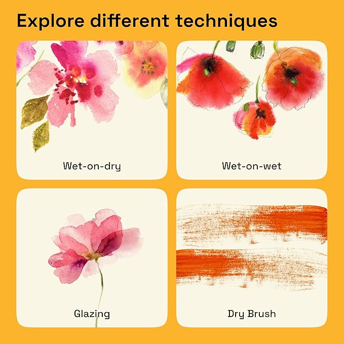- Versatile Metallic Application Techniques: Our metallic watercolors are designed for flexible use, allowing for smooth flat washes and easy layering. The metallic paints blend seamlessly and do not leave hard edges when dry, enabling a range of professional techniques.