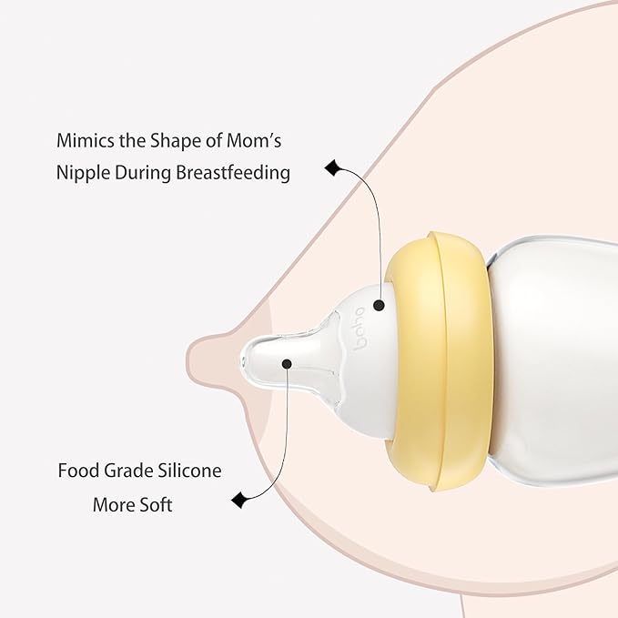 - Glass natural baby bottles with natural response nipples can control the speed of milk according to the baby suction, just like the natural sensation of breastfeeding.