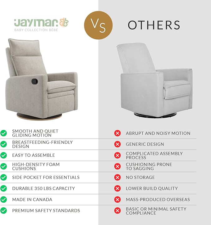 - DURABLE AND SAFE DESIGN: Handcrafted in Canada, this swivel recliner chair features a sturdy solid wood frame and anti-sag springs, ensuring long-lasting durability. Supports up to 350 lbs. and meets strict safety standards