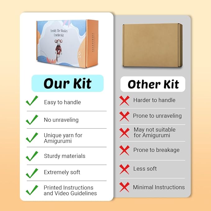 CULETCRAFT Crochet Kit for Beginners Adults, Freddy The Monkey DIY Crochet Animal Kit for Beginners, Learn to Crochet with Step-by-Step Instruction Book, Beginner Crochet Kit for Adults and Kids