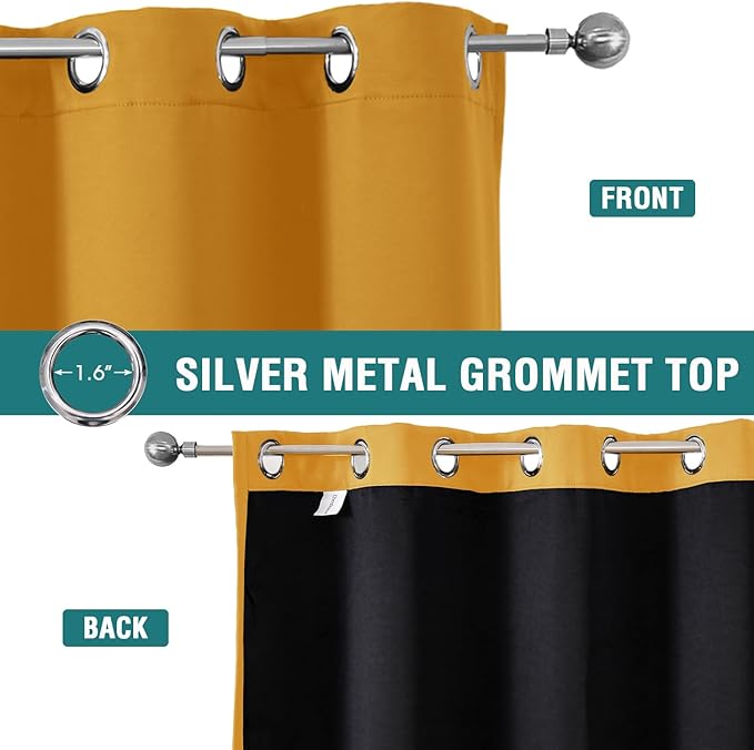 ChrisDowa 100% Blackout Curtains 80 inch Long for Bedroom with Black Liner, 2 Thick Layers Total Blackout Thermal Insulated Grommet Window Curtains 2 Panels Set (Mustard Yellow, 52 x 80 Inch)