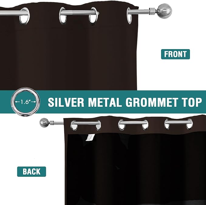 - SET DETAILS: Set of 2 total blackout curtain panels per package. Each lined curtain measures 52 inch wide by 90 inch long with 8 silver metal grommets (1.6 inch inner diameter) on top, easy to install and slide.