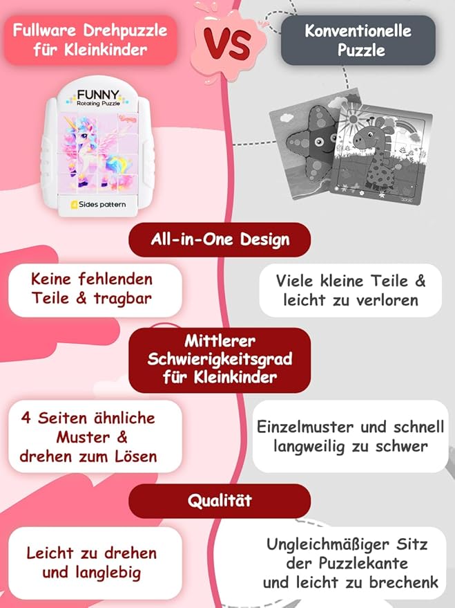 - A HANDY TOY FOR OUTINGS - Whether in the car or at a restaurant, our compact Rotating Puzzles can be carried along and keep children quiet and occupied. Moreover, there is no risk of missing pieces after playing with this all-in-one design puzzle!