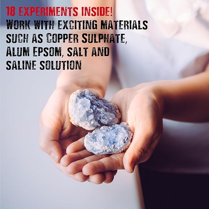- EDUCATIONAL HANDS ON SCEINCE: introduce kids into the world of STEM/ steam research and analytical thinking through each science experiments: The experiments will illuminate kids on how crystals are formed and which chemical materials are required. Kids will be working with exciting materials like Copper Sulphate, Alum, Epsom Salt & Saline Solutions, to create different types of funky homemade crystals. How exciting is that!