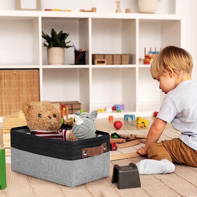 DULLEMELO Small Storage Baskets for Organizing - 11.8x7.9x5.1 inch Collapsible Storage Bins Set of 2 cloth storage bins for organizing Books and towel storage (Black&Grey)