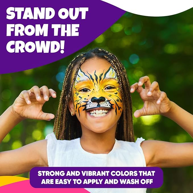 - 🎭 𝗙𝗨𝗡 𝗪𝗜𝗧𝗛 𝗬𝗢𝗨𝗥 𝗞𝗜𝗗𝗦: Our face paint set is perfect for birthdays, Halloween, school events, or creative playtime! This safe face paint make up is non-toxic, and washable face paint kit is a fun and thoughtful gift that sparks imagination and encourages artistic expression in kids to create butterfly, cat, bunny, christmas, fairy, lion, witch, deer, tiger, wolf, sally, pumpkin, clown face paint kit
