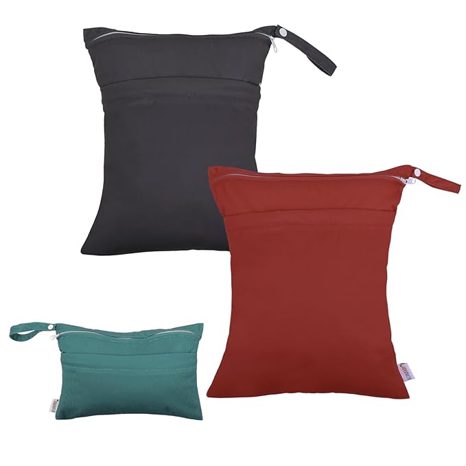 ALVABABY 3 Cloth Diaper Wet Dry Bags Waterproof Reusable with Two Zippered Pockets Travel Beach Pool Daycare Soiled Baby Items Yoga Gym Bag for Swimsuits or Wet Clothes Small medium Large 3L-SML02
