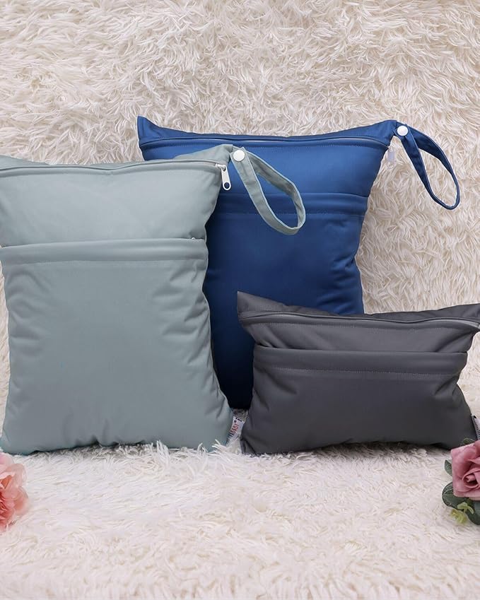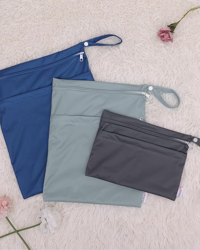 ALVABABY 3 Cloth Diaper Wet Dry Bags Waterproof Reusable with Two Zippered Pockets Travel Beach Pool Daycare Soiled Baby Items Yoga Gym Bag for Swimsuits or Wet Clothes Small medium Large 3L-SML01