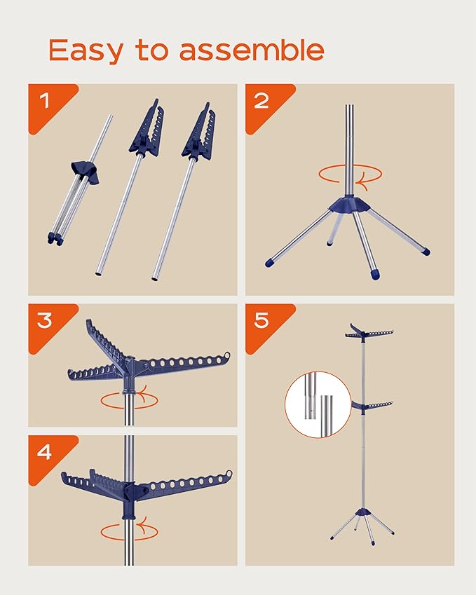 - [Easy to assemble and carry] This drying rack can be installed in just four steps and can be completed within three minutes. The easy to disassemble and assemble design makes it possible for you to carry it with you when you need to dry your clothes on a camping trip.