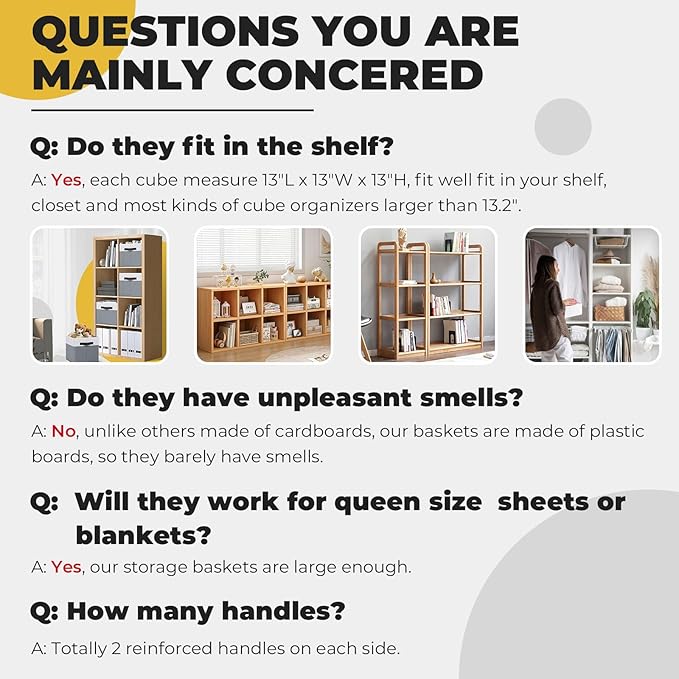 - 【𝙉𝙊 𝙈𝙊𝙍𝙀 𝙒𝙊𝙍𝙍𝙄𝙀𝙎 𝘼𝙗𝙤𝙪𝙩 𝙌𝙪𝙖𝙡𝙞𝙩𝙮 𝙖𝙣𝙙 𝙎𝙢𝙚𝙡𝙡𝙨】 Our cube storage bins are made of tear-resistant fabric with odorless plastic panels, ensuring reliable durability and security for baby nursery organization. Each cube basket has two strong handles, capable of holding up to 30 lbs heavy supplies.