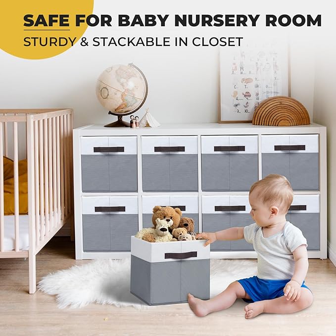- 【𝙉𝙊 𝙈𝙊𝙍𝙀 𝙒𝙊𝙍𝙍𝙄𝙀𝙎 𝘼𝙗𝙤𝙪𝙩 𝙌𝙪𝙖𝙡𝙞𝙩𝙮 𝙖𝙣𝙙 𝙎𝙢𝙚𝙡𝙡𝙨】 Our cube storage bins are made of tear-resistant fabric with odorless plastic panels, ensuring reliable durability and security for baby nursery organization. Each cube basket has two strong handles, capable of holding up to 20 lbs heavy supplies.