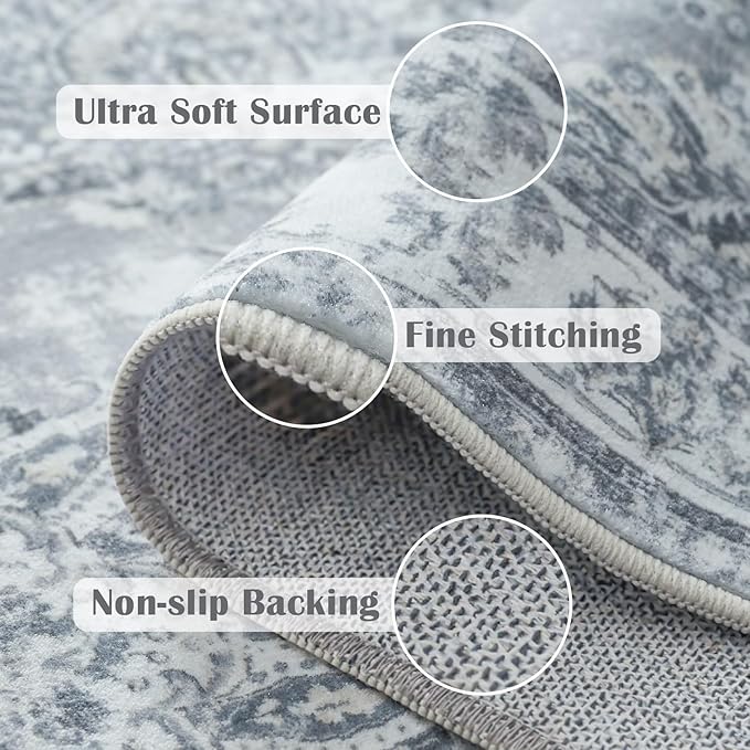 jinchan Runner Rug 2x5 Washable Hallway Runner- Vintage Floral Non Slip Low-Pile Soft Thin Kitchen Rug Distressed Carpet for Farmhouse Bedroom Entryway Laundry Room(2x5ft,Grey)