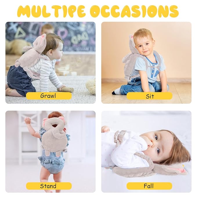 Baby Head Protection Backpack - Soft & Comfortable, Cute Cartoon Design, Elephant