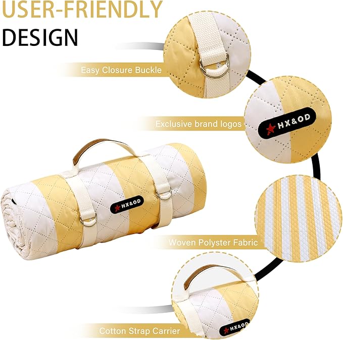 - ☀ 【Waterproof & Machine Washable】Outdoor picnic blanket is super easy to clean due to its durable and waterproof backing, easily shake & wipe off dirt, mud, wet grass, and beach sand. And you could put it into washing machine to save your time and free both hands.