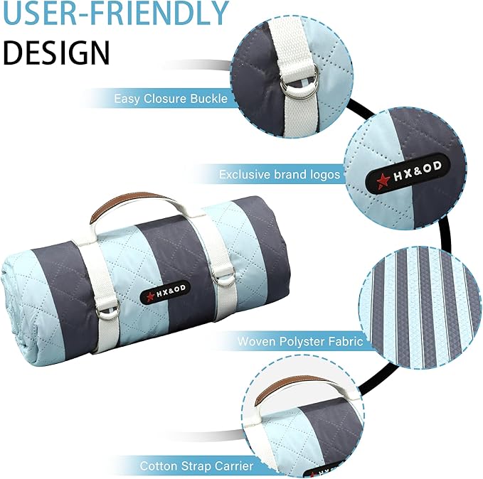 - ☀ 【Waterproof & Machine Washable】Outdoor picnic blanket is super easy to clean due to its durable and waterproof backing, easily shake & wipe off dirt, mud, wet grass, and beach sand. And you could put it into washing machine to save your time and free both hands.