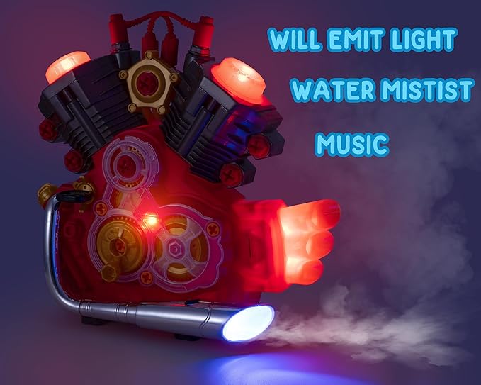 - Very realistic motorcycle engine model with sound and light. It is worth noting that when you pour water into the exhaust pipe, the turnng handle will not only emit sound and light, but also have apary, which is to simulate the jet effect after the motorcycle starts, and turn the handle for four times in a row to get a more realistic motorcycle starting sound effect and music. Such fun-filled toys are sure to attract children's interest.