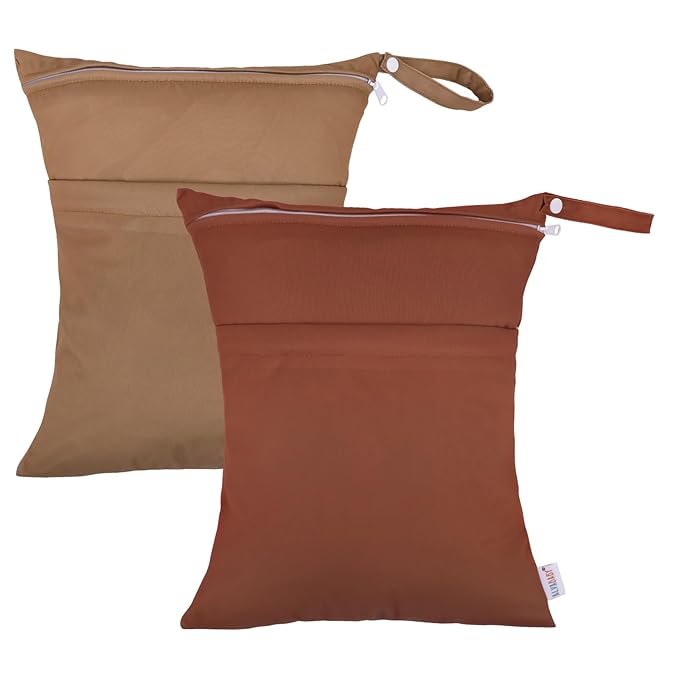 ALVABABY 2pcs Cloth Diaper Wet Dry Bags Waterproof Reusable with Two Zippered Pockets Travel Beach Pool Daycare Soiled Baby Items Yoga Gym Bag for Swimsuits or Wet Clothes 2LM06