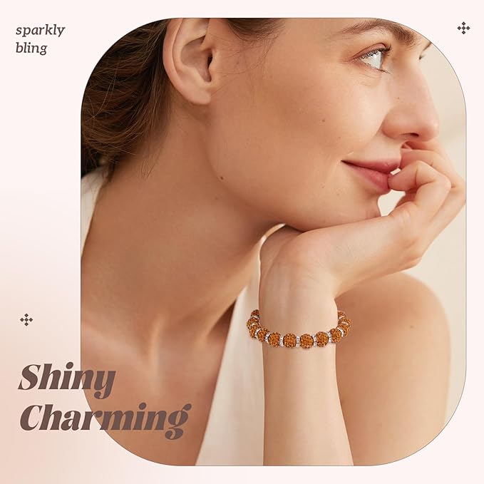 105pcs 10mm Rhinestone Beads for Jewelry Making, Brown Shiny Round Disco Ball Beads Bulk, Sparkle Crystal Clay Christmas for Bracelet Baseball Necklace Earring Crafting and DIY
