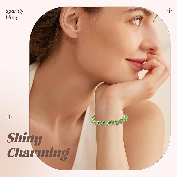 160pcs 10mm Rhinestone Beads for Jewelry Making, Light Green Shiny Round Disco Ball Beads Bulk, Sparkle Crystal Clay Christmas for Bracelet Baseball Necklace Earring Crafting and DIY